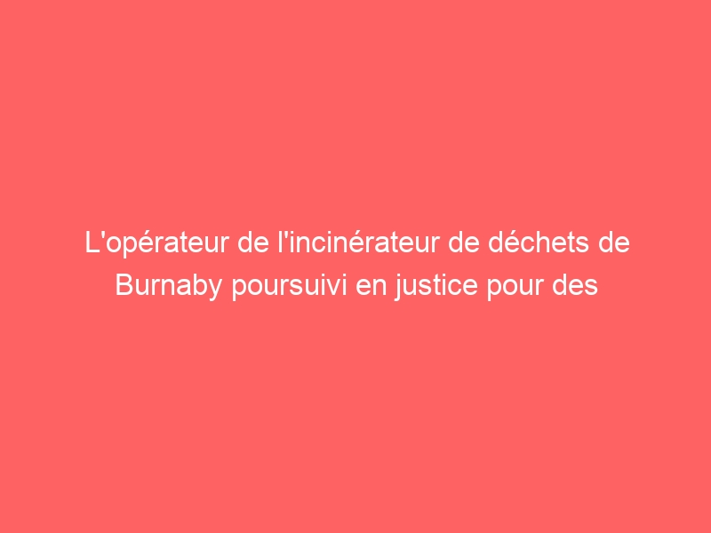 L'opérateur de l'incinérateur de déchets de Burnaby poursuivi en justice pour des problèmes de pollution