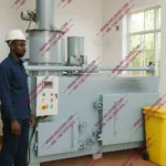 • Two-chamber design: Primary combustion chamber for solid waste; secondary chamber for smoke and gas treatment at >1100°C.