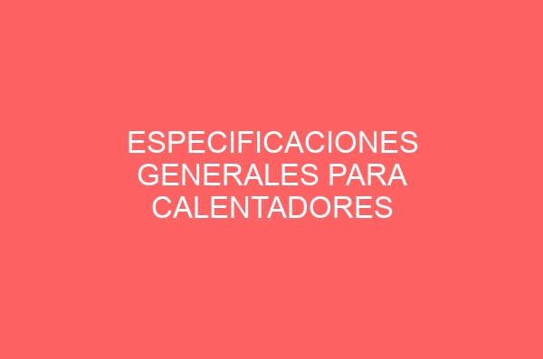 ESPECIFICACIONES GENERALES PARA CALENTADORES